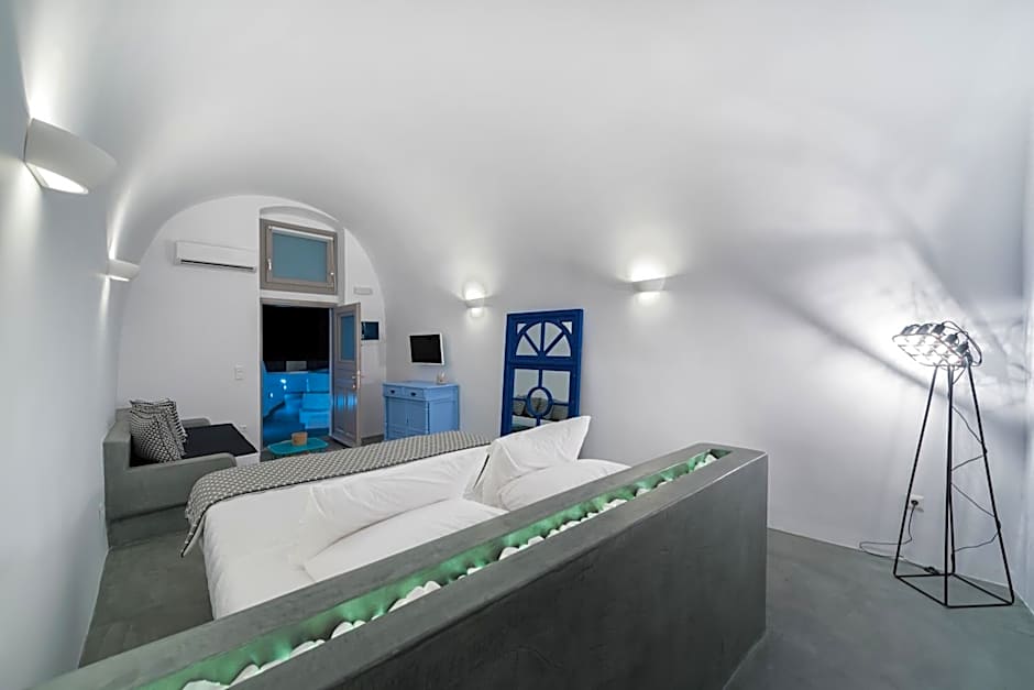Indulge in a luxurious junior suite with a private jacuzzi and a breathtaking caldera view, perfect for a romantic getaway for two. Extra comfort with air conditioning, soundproofing, and a private entrance.